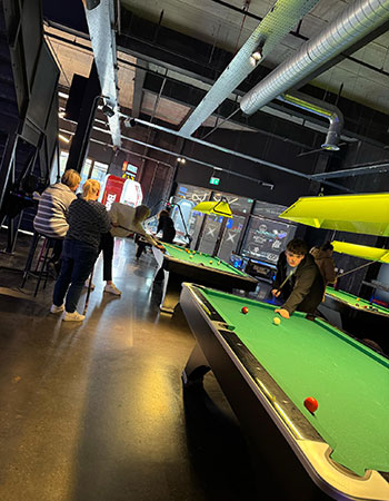 Following the high-speed action, the team moved on to the pool hall, where three tables were booked alongside arcade games and air hockey. The tournament proved intense, with James and Charlotte's gruelling 50-minute semi-final leaving little time for a proper final. The last game was played under dim lighting, but the competitive spirit remained strong with Andrew beating James.